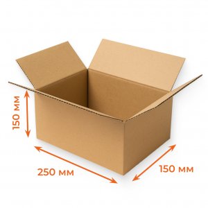 Гофрокороб размером 250х150х150 мм, изготовленный из картона Т22В в буром цвете. Компактный и прочный короб для упаковки товаров и предметов.