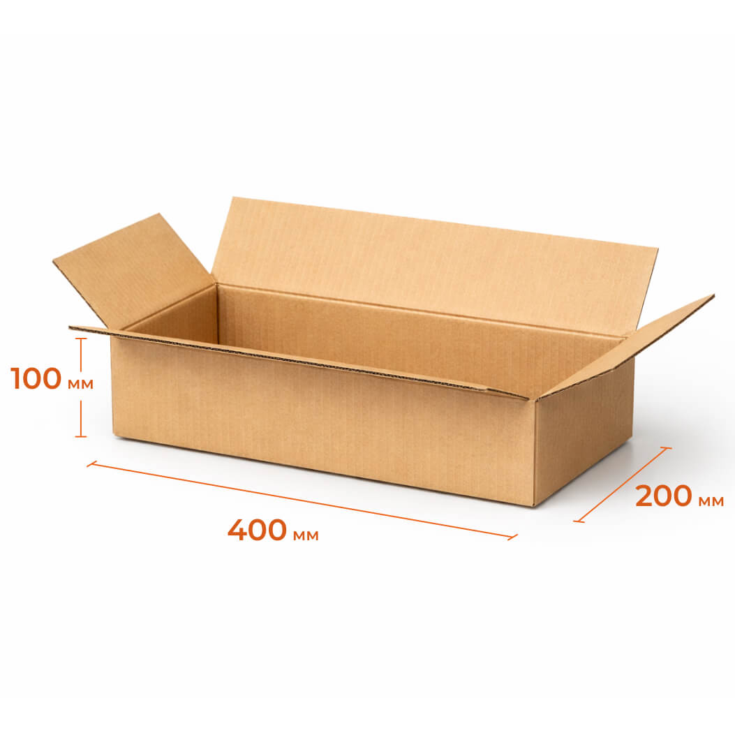 Коробка из гофрокартона 400х200х100, изготовленная из картона Т23В, используется для упаковки, хранения и отправки товаров.