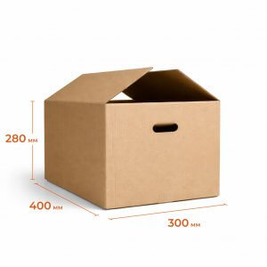 Картонная коробка 400х300х280 с ручками изготовлена из прочного гофрокартона Т23В и предназначена для упаковки, хранения и транспортировки товаров.