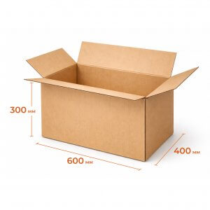 Картонная коробка 600х400х300 изготовлена из прочного гофрокартона Т23В и предназначена для упаковки, хранения и транспортировки товаров.