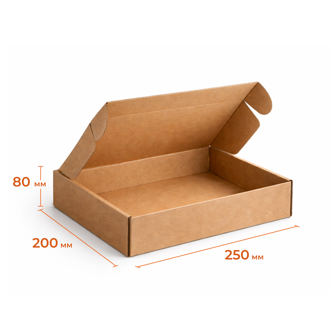 Короб с ушками 250х200х80 мм Т23В бурого цвета. Эта самосборная коробка из качественного бурого картона обладает всеми необходимыми характеристиками для безопасного и удобного хранения и перевозок.